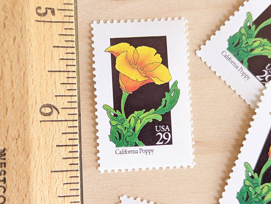 California Poppy Stamps, Set of 5, Vintage Unused USPS 29 Cent Postage Stamps, Wildflower Stamps 1992, Gummed