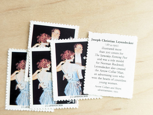 Joseph Christian Leyendecker, Arrow Collars And Shirts, Set of 5, Vintage Unused USPS 34 Cent Postage Stamps, American Illustrators Series 2000, Gummed