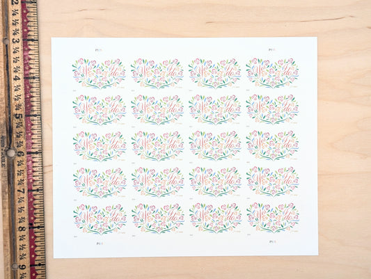 Yes I Do Stamps, Sheet of 20, Vintage Unused USPS 70 Cent Postage Stamps, Wedding Stamps 2014, Self-Adhesive
