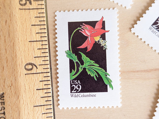 Wild Columbine Wildflower Stamps, Set of 5, Vintage Unused USPS 29 Cent Postage Stamps, Wildflowers 1992, Gummed