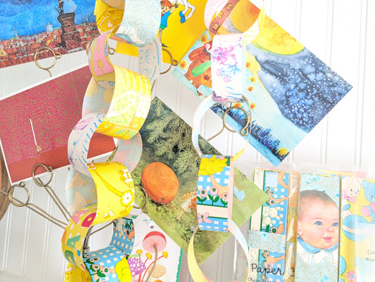 Vintage Book Paper Chain Kit, 31 Chains and 31 Number Stickers to Count Down or Decorate, Made with Vintage Book Pages, 1 or 1.5 Inches Wide